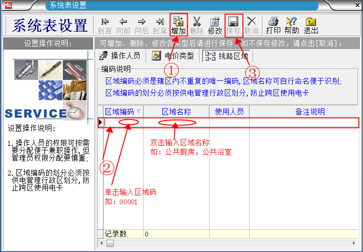 “區域”的意思就是,你想把電表分成幾個區域使用,你就設置幾個區域。如(你有6只電表,想分成ABC三個區域,A區的用戶 不能在BC區使用,B區的用戶不能在AC區使用,C區的用戶不能在AB區使用。 如果想讓所有的用戶在所有的電表上都能使用的話,就1個區域就可以了)。