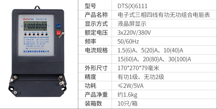 DTS(X)6111、DSS(X)6111型三相電子式有功無(wú)功組合電能表(以下簡(jiǎn)稱電能表),是為了適應(yīng)電網(wǎng)改造設(shè)計(jì)開發(fā)的有功、無(wú)功組合式電能表。它具有較高的準(zhǔn)確度和可行性。產(chǎn)品制造標(biāo)準(zhǔn)符合GB/T17215.321-2008《1級(jí)和2級(jí)靜止式交流有功電能表》、GB/T17215.323-2008、DL/T614-1997《多功能電能表》、DL/T645-1997《多功能電能表通信規(guī)約》等電力行業(yè)標(biāo)準(zhǔn)對(duì)三相靜止式電能表全部技術(shù)要求,是對(duì)需要進(jìn)行無(wú)功電量考核的企業(yè)、變電站或電廠理想的選擇,亦適合輸配電或配網(wǎng)自動(dòng)化用表。本產(chǎn)品可供計(jì)量參比頻率為50Hz電網(wǎng)中的三相交流有功和無(wú)功電能,并能進(jìn)行正、反向電能計(jì)量和紅外及RS485通訊功能。其特點(diǎn)是精度高、可靠性好、寬負(fù)荷、低功耗、誤差曲線平直、抗干擾能力強(qiáng)。