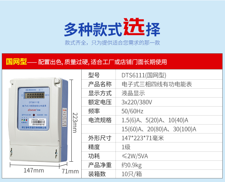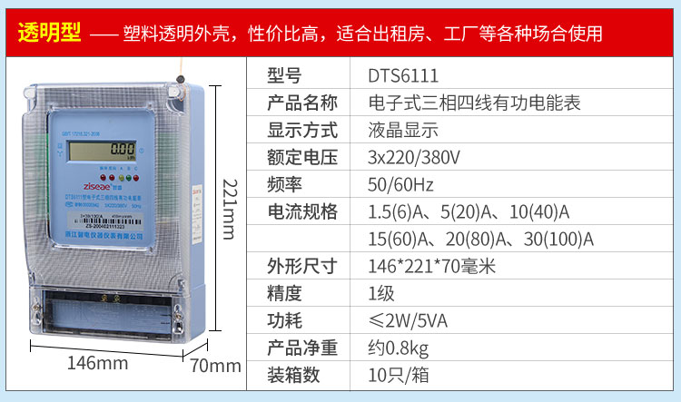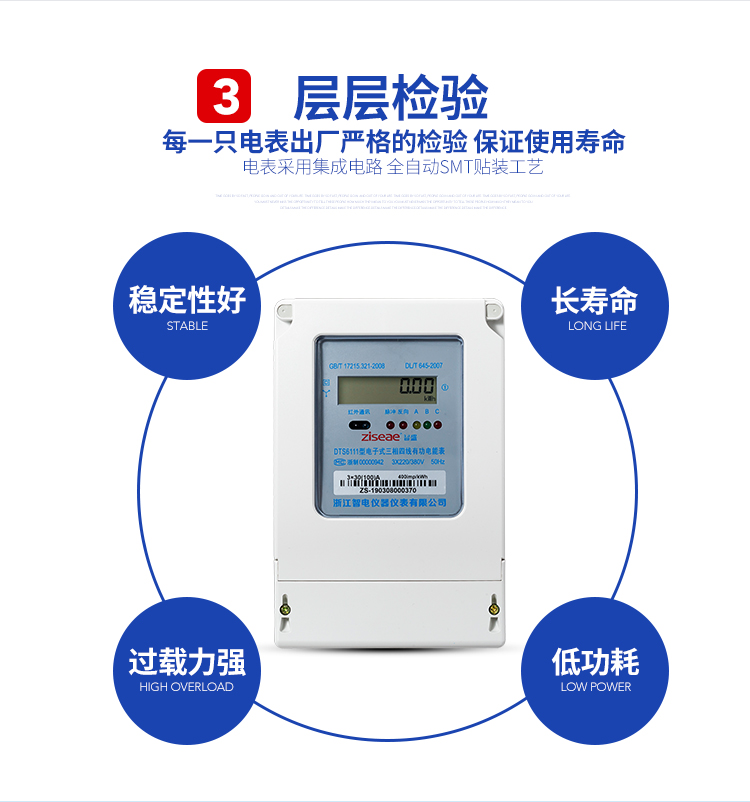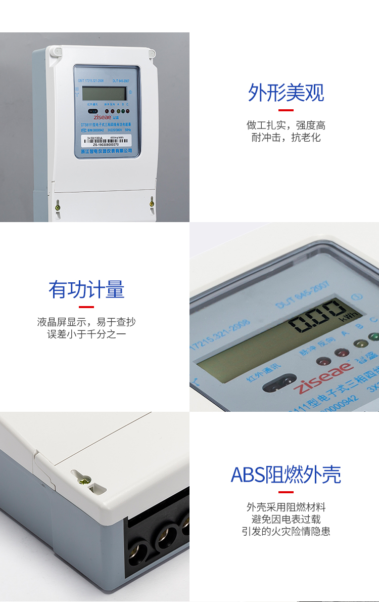 DTS6111型三相四線和DSS6111型三相三線兩種型號三相電子式有功電能表,內(nèi)部運用了集成電路在經(jīng)過SMT工藝生產(chǎn)制作而成。結構設計合理,制作工藝先進,跟傳統(tǒng)的電能計量表對比,三相電子式有功電能表的測量準確度高、性能可靠、節(jié)能。