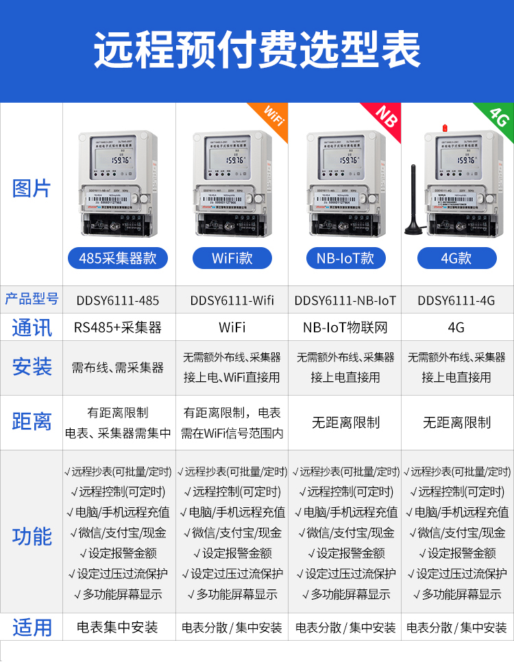本公司DDSY6111\DDZY6111遠(yuǎn)程智能電表與本公司遠(yuǎn)程抄表系統(tǒng)和手機(jī)APP配套使用,遠(yuǎn)程抄表管理系統(tǒng)具有實(shí)時(shí)抄表、定時(shí)抄表外,還提供了設(shè)備管理功能,如告警、余額短信通知、遠(yuǎn)程充值、手機(jī)抄表、手機(jī)查詢、手機(jī)充值、預(yù)付費(fèi)、后付費(fèi)、自助充值機(jī)充值、遠(yuǎn)程拉合閘、各種查詢報(bào)表、統(tǒng)計(jì)報(bào)表下載等功能。